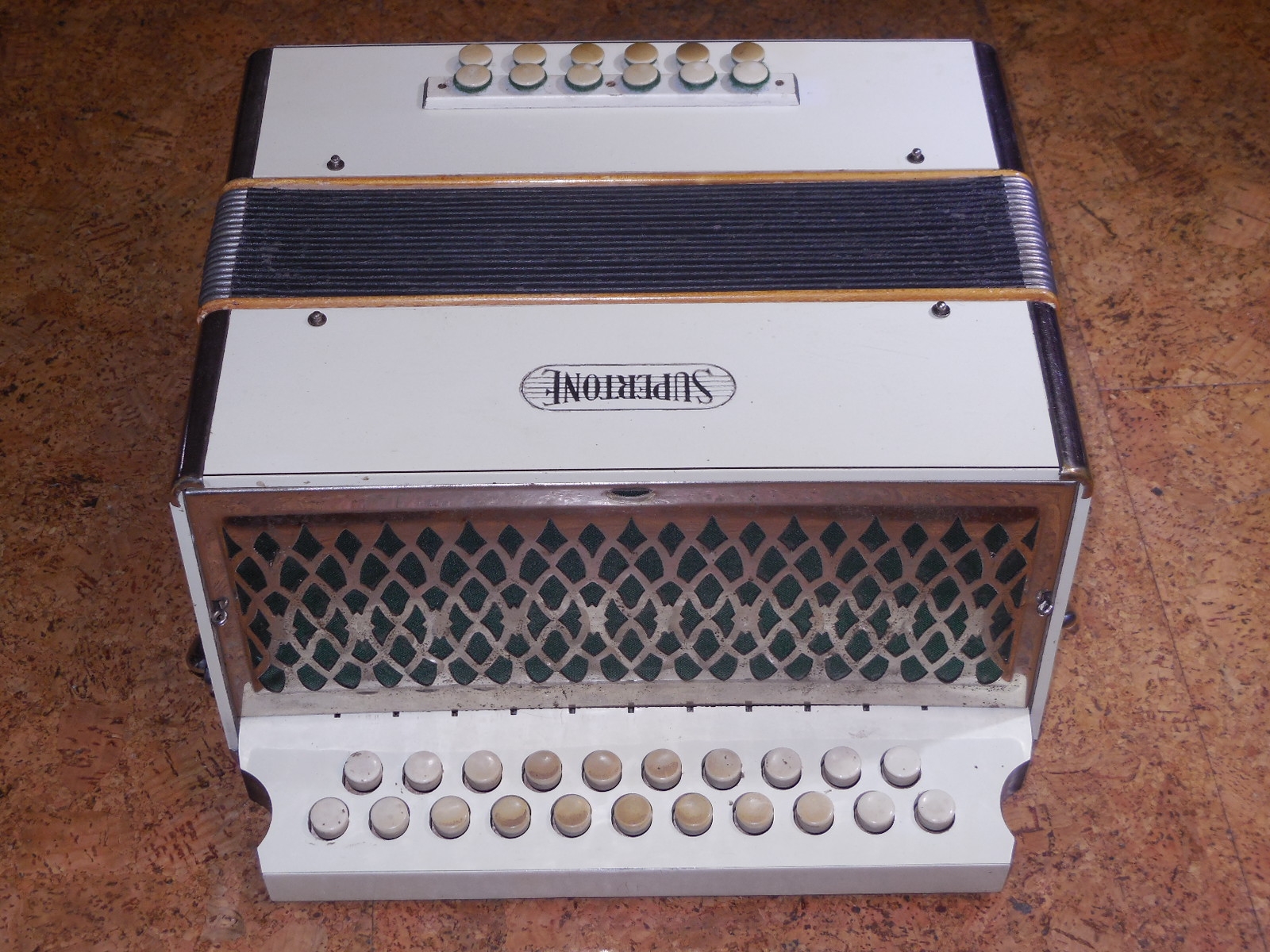 Classic Supertone (Hohner factory) A/D 12 bass button accordion made in Germany. It is in excellent condition.