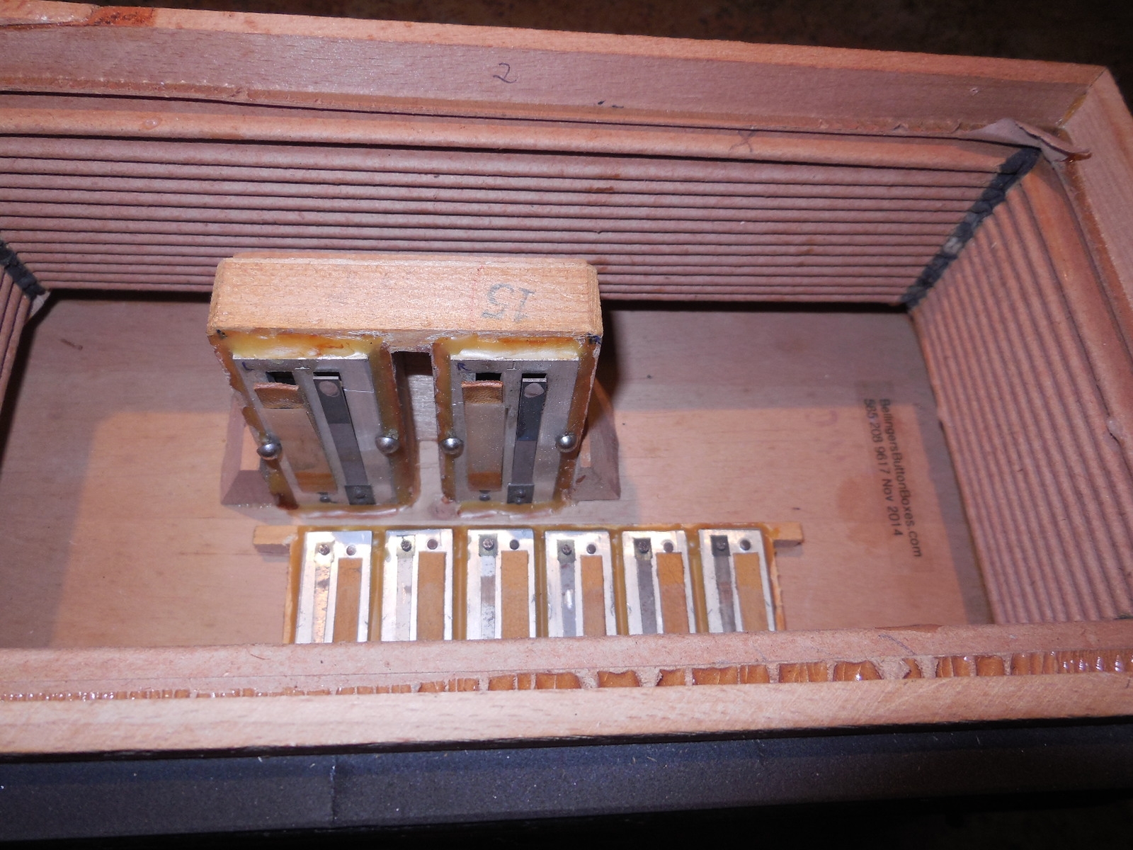 The original leather one way valves on the treble reedplates were all removed and replaced with modern plastic one way valves for long trouble free life. The bass and chord valves were repaired or replaced as needed. Final tuning occurs in situ with the reedblocks attached to the soundboard.