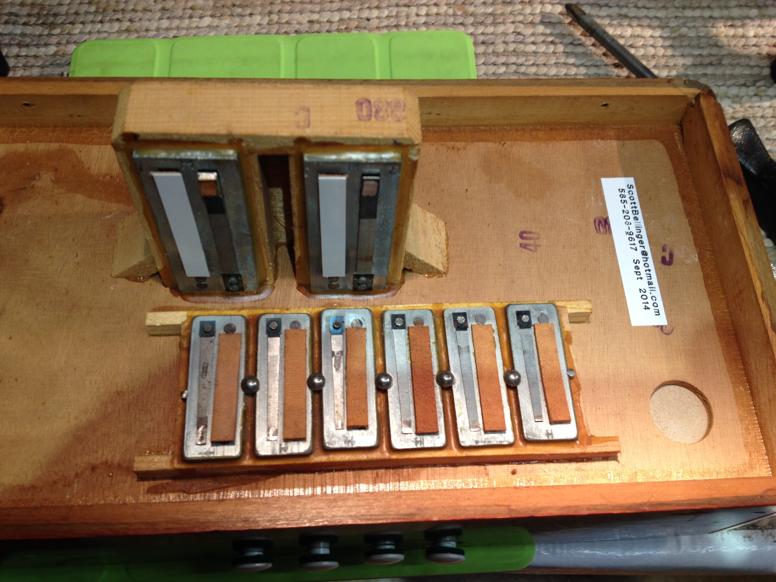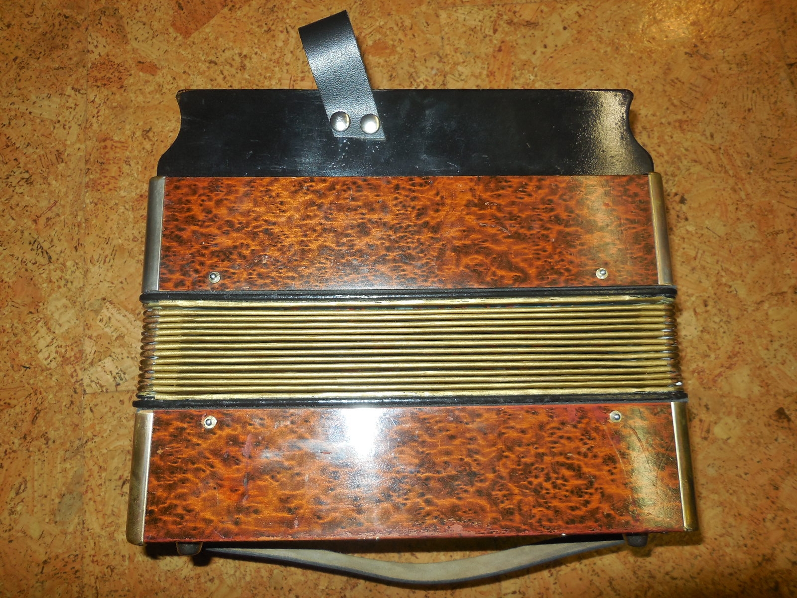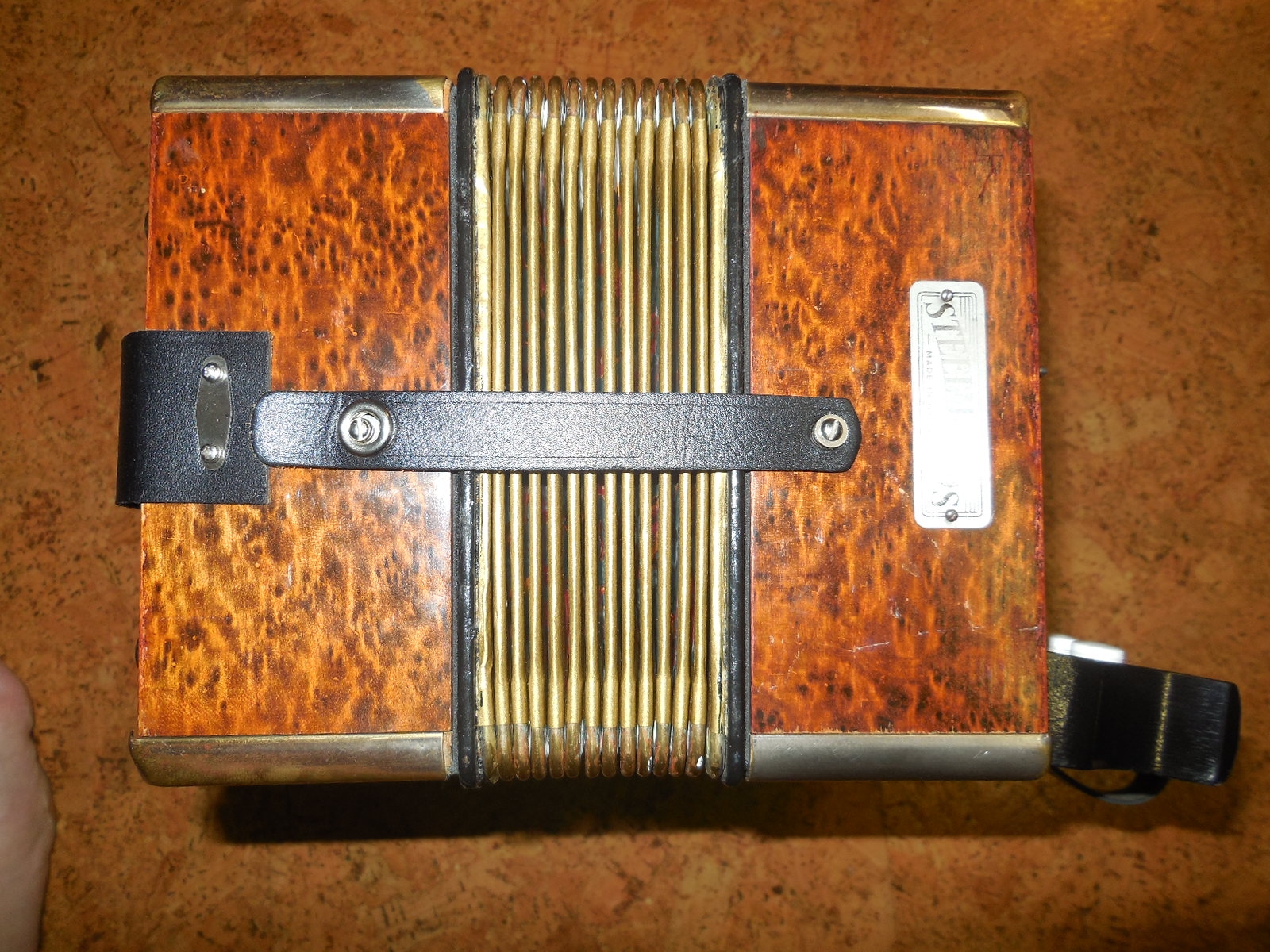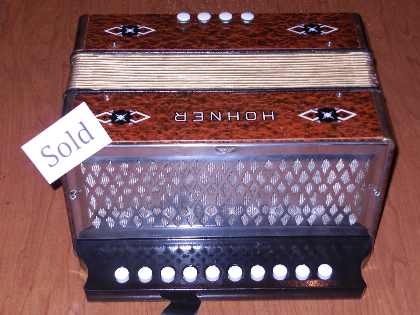 Most of these older Hohner accordions are found with numerous notes out of tune, wheezing or not sounding at all. This was just fully tuned. There are 56 reeds in this instrument and every single one has been tuned. The treble reeds were tuned with a tremolo beat frequency of approximately 1.5 Hz at the low notes gradually rising to about 5 Hz at the high notes, for a sweet tremolo. Since this is a one row instrument I have tuned the thirds flatter than equal temperament, closer to just temperament for a sweeter sound. This technique doesn’t work well on multi-row instruments as any particular note could be used in different keys so equal works better in that case.