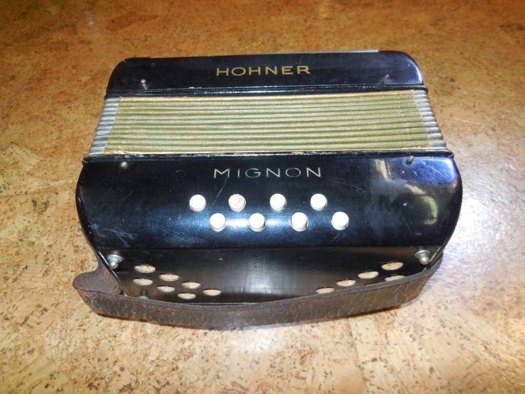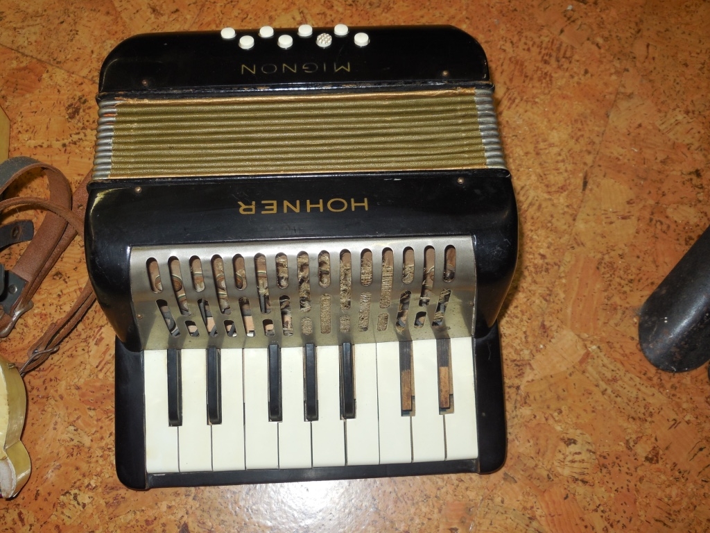 Small Hohner 8 bass piano accordion, 1 voice, unrestored.
