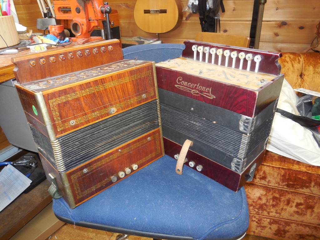I have a number of one row button accordions. Rather than restoring and tuning to my liking I have decided to see if there is any interest in any of them before I start. This will allow me to customize the restoration and tune specifically as the buyer desires. Typical refurbishment might include re-valving, re-waxing, re-padding pallets, limiting button travel, adding strap brackets, new grill cloths, new bellows gaskets, etc. Not everyone wants or is willing to pay for all of these tasks so buyers can determine what is important to them and only pay for those features.