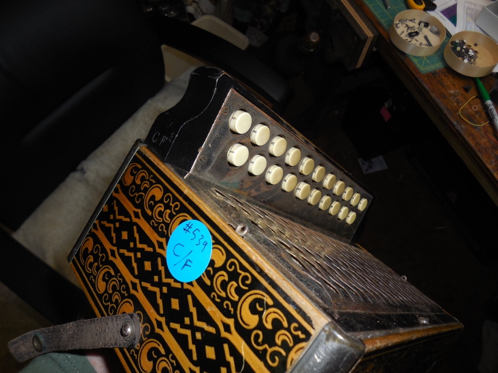 I have a number of used button accordions. Rather than restoring and tuning to my liking I have decided to see if there is any interest in any of them before I start. This will allow me to customize the restoration and tune specifically as the buyer desires. Typical refurbishment might include re-valving, re-waxing, re-padding pallets, limiting button travel, adding strap brackets, adding anti-vibration cross bars between reedblocks, new grill cloths, new bellows gaskets, etc. Not everyone wants or is willing to pay for all of these features so buyers can determine what is important to them and only pay for those.