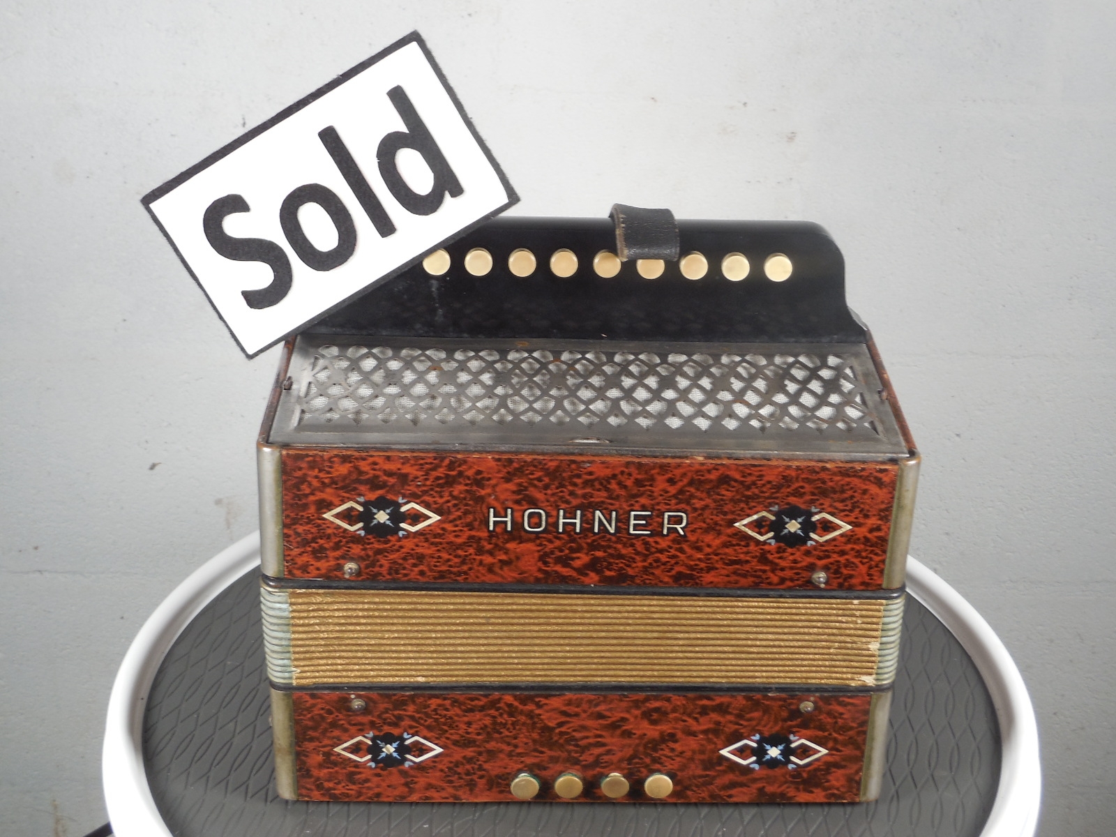 Restored Hohner button accordion in the key of G circa 1970. This was made in Germany in the Hohner factory.