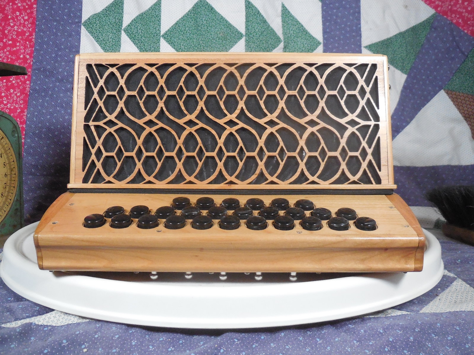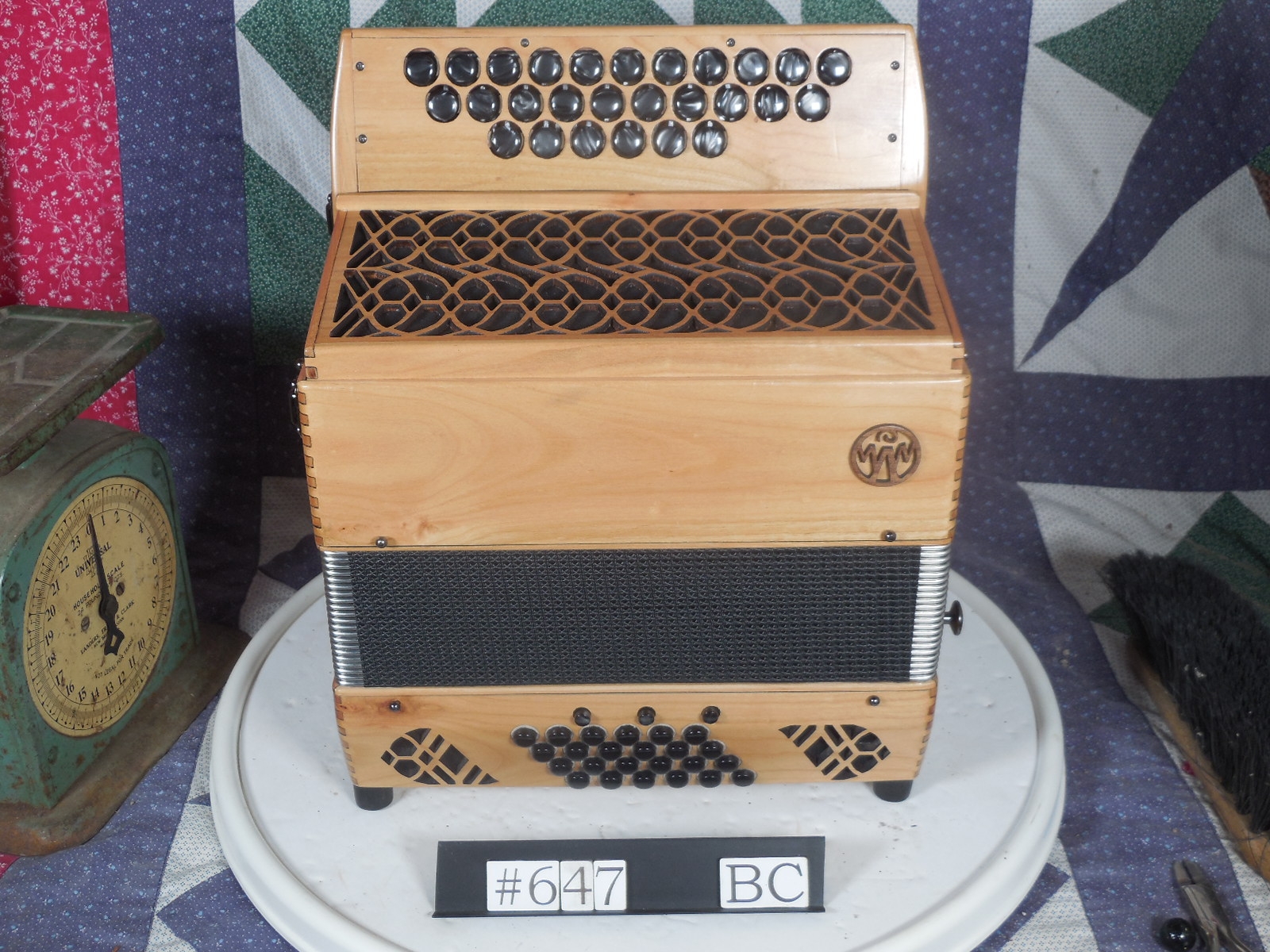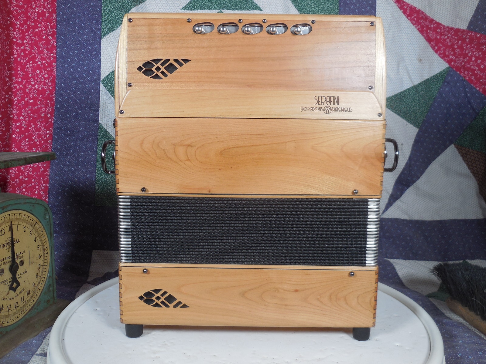 Sérafini Darwin 3 voice accordion in BC. Cherry wood. Reeds are Voci Armoniche Tipo a Mano