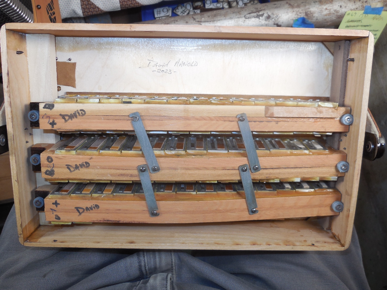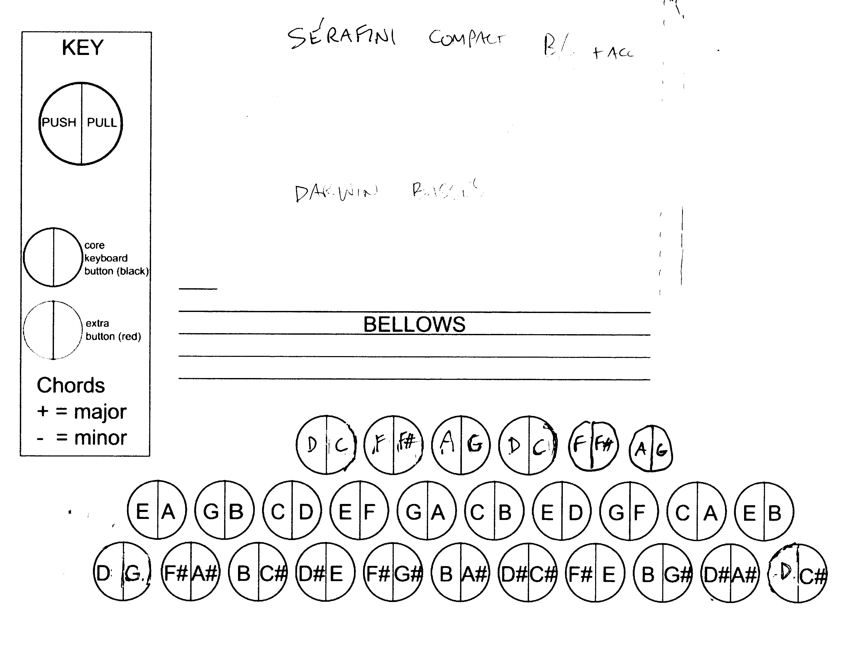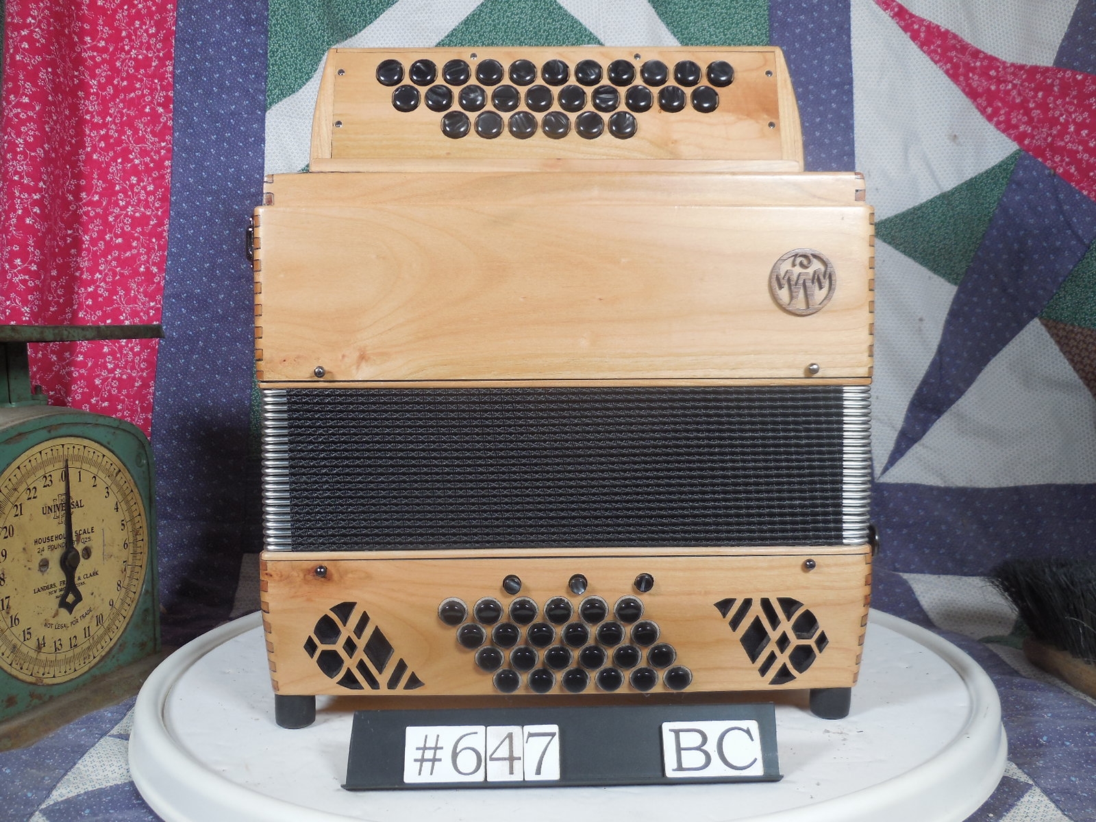 Sérafini Darwin 3 voice accordion in BC. Cherry wood. Reeds are Voci Armoniche Tipo a Mano